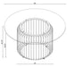 Nestled amidst the verdant embrace of potted palms, the Art Deco-inspired dining table is a modern masterpiece, its cylindrical form enshrouded by gleaming metal rods that whisper tales of Gatsby-esque opulence. A clear, tempered glass top, expansive at 60 inches, floats like a crystalline pond above the polished chrome base, inviting an array of tablescapes to dance upon its surface. Surrounding this sculptural piece, four sumptuous green velvet chairs beckon, their channel tufted backs and swiveling seats echoing the luxury of a bygone era, yet firmly rooted in contemporary comfort. The table and chairs, a marriage of retro flair and modern lines, stand as a stunning focal point, inviting guests to linger over shared meals and conversations that sparkle as brightly as the chrome finishes that bind them. Key Features: • Five-piece dining set with round table and four chairs • Table with 60" clear tempered glass top and cylindrical cage-like metal base in polished chrome • Chairs with bucket style seats, vertical channel tufting, and soft green velvet upholstery • Swivel mechanism on chairs with sharply angled polished chrome legs • Suitable for modern dining rooms, pub settings, or as a sophisticated addition to a media room
