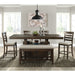 The Colorado dining collection, brings boldness to a casual dining scheme. With a trestle base design and a deep finish, this everyday counter height table serves as a perfect gathering space. Enjoy an attractive chevron design on its table top while accommodating deep chairs and extra storage. The inventive table design creates options for positioning to suite your needs. The slat back design of the chair and the black hardware finishes, reflect a design-forward blend of modern and farmhouse concept. Features: • Crafted from Solid Wood • Acacia Veneer Surfaces • Distressed with saw makings and skiving detail • Foam Cushioning • upholstered in cream fabic • Tapered Legs • Modern Farmhouse Design • Easily Assembled Dimensions: Depth: 17.0" x Width: 48.0" x Height: 25.0" Weight: 40.0 lbs.