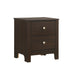 The Sami Nightstand offers the perfect blend of style and function for your child's room. The dark wood finish brings a sophisticated and elegant look, while the spacious drawers provide ample storage for clothing and essentials. Featuring smooth center metal glides, each drawer opens effortlessly for easy access. Designed with youth sizing, this set is ideal for kids' rooms, adding a touch of refinement. Stylish nickel knobs offer a modern accent, and the raised base with open feet gives the nightstand a contemporary feel, making it a practical and chic addition to any bedroom. Features: • Dark Wood Finish for a Sophisticated and Elegant Look • Ample Storage with Spacious Drawers • Smooth Center Metal Glides for Easy Access and Functionality • Youth-Sized Design Perfect for Kids' Rooms • Stylish Nickel Knobs Provide a Modern Accent • Raised Base with Open Feet for a Contemporary Touch • 21"W x 16"D x 23"H • Due to lighting, product color may slightly vary from images. Dimensions: Depth: 16.0" x Width: 21.0" x Height: 23.0" Weight: 33.0 lbs.