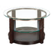 The Elsa Round Coffee Table is the perfect addition to your living room! This coffee table is great for small space living thanks to its removable casters, allowing you to move the table with ease any time you have company over or you just want to rearrange the place. This coffee table has a timeless style, with its glass table top. The accent table also comes with an interior shelf that allows for any extra storage or the perfect spot for decor. The rich espresso color is classic and easy to match with any existing decor and furnishings. Features: • Round Coffee Table • Removable Casters • Glass Table Top • Glass Shelf in Middle of Table • Straight Legs • Traditional Design • Espresso Finish Dimensions: Depth: 35.0" x Width: 35.0" x Height: 22.0" Weight: 69.0 lbs.