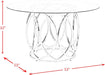 Elements Merlin Round Dining Table CDML100DTC. Bring your dining space to the 21st century or dazzle your guests with this eye-catching Merlin dining table. Crafted from iron, its pedestal base takes on a cylindrical silhouette with an openwork design and polished chrome finish for a contemporary and glam look. Up top, a circle of clear glass rounds out the design. This is the perfect collection to incorporate sophistication and modern chic decor into your favorite space.1.