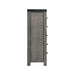 The Wade 5-Drawer Chest is the ultimate chest for your home! This chest comes with five, spacious drawers; perfect for easily keeping all of your belongings neatly stored away. The bottom drawer features a dust proofing layer to help protect your belongings. The drawer pulls and trim along the top of the chest are both metal with a black finish. Along the trim on the chest are decorative bolts, adding a little extra flair. This chest is finished in a neutral gray, making it easy to pair with any existing decor or to find an excuse to completely redo your bedroom. Please note wood grains vary piece by piece and will not look exactly like the picture. Features: • Five Spacious Drawers • Black, Felt-Lined Top Drawer • Metal Drawer Pulls in Black Finish • Black Metal Trim along Top Edges with Decorative Bolts • Gray Finish • Straight Legs • Dust Proofing on Bottom Drawer • Anti-Tipping Dimensions: Depth: 17.0" x Width: 34.0" x Height: 48.0" Weight: 140.0 lbs.
