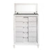 The sophisticated Twenty Nine bedroom collection features a white finish paired with acrylic hardware and feet. This chest has solid plywood framing, and felt lined top drawers. The perfect addition to your bedroom. Features: • Five Spacious Drawers • Flip-Top Mirror • Jewelry Tray under Flip Top • Sleek, Glass Trim • Acrylic Drawer Handles • Decorative Drawer Fronts • Acrylic, Tapered Feet • Felt-Lined Top Drawer • Dust Proofing Layer on Bottom Drawer • White Finish Dimensions: Depth: 18.0" x Width: 39.0" x Height: 54.0" Weight: 201.0 lbs.