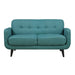 The Hadley Loveseat is where modern design meets vintage flair. Perfect for relaxing in style, this loveseat features precise tufting on the back cushions. This loveseat features low arms, adding the perfect amount of modern design. The seat and back cushions are filled with foam, so you can relax for hours at the end of the day. The mid-century style tapered legs complete the look of this vibrant loveseat. Features: • Mid-Century Style • Vibrant Color • Low Arms • Tufted Back Cushions • Dark Espresso Tapered Legs • Modern Design • Foam Cushion Filling • Soild Wood Framing Dimensions: Depth: 34.0" x Width: 63.0" x Height: 34.0" Weight: 88.0 lbs.