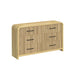Enhance your bedroom with the stylish Ridgemont Dresser. Finished in a light wood with natural grain detailing, this piece brings warmth and elegance to any space. Sleek, rounded edges and vertical reeding throughout create a modern yet refined aesthetic. The dresser features a black felt-lined top drawer, providing protection and organization for your essentials. Spacious drawers, accented with bold black bar pulls, offer ample storage. With clean, minimalist lines, the Ridgemont Dresser combines function and contemporary design, making it an ideal addition to your bedroom. Features: • Versatile, Neutral Finish with Aesthetic Grain • Gently Rounded Corners Mark Modern Style • Top-Row Drawers with Protective Felt Lining • Dovetailing Marks Skillful Craftsmanship • Fluted Drawer Front Adds Visual Interest • Anti-Tip Kit Enhances Safety • No Assembly Required • Due to Lighting, Product Color May Slightly Vary from Images • 62"W x 16"D x 37"H Dimensions: Depth: 16.0" x Width: 62.0" x Height: 37.0" Weight: 194.0 lbs.