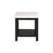 The Marcello White Marble Square End Table will give your living room the update youve been craving! This accent table features a solid, marble table top, that contrasts beautifully with the black wooden base. This end table comes with a bottom shelf, ideal for displaying your favorite decor. The plank style shelf adds extra character to this already stunning piece. Add this gorgeous piece to your home today for a look that will last year after year. Features: • White, Marble Table Top • Black, Wooden Base • Plank Style Bottom Shelf • Square Shape • Contemporary Style • Straight Legs Dimensions: Depth: 22.0" x Width: 22.0" x Height: 24.0" Weight: 51.0 lbs.