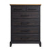 The Montrose Chest in Espresso and Brown effortlessly blends timeless design elements with modern practicality. The aesthetic dual-toned finish adds visual interest, while the high-quality pine veneer enhances durability. Felt-lined top-row drawers provide extra protection for your delicate items, and metal drawer pulls add a sophisticated, industrial touch. To further this piece's appeal, drawer boxes feature skillful dovetail construction and smooth ball-bearing glides. For a refined and practical addition to your bedroom, the Montrose Chest delivers in both quality and style. Features: • Pine Veneer Enhances Durability • Aesthetic Dual-Tone Finish • Top Drawer with Protective Felt Lining • Drawers with Skillful Dovetailing & Ball Bearing Glides • 40"W x 18"D x 54"H • Due to Lighting, Product Color May Slightly Vary from Images Dimensions: Depth: 18.0" x Width: 40.0" x Height: 54.0" Weight: 160.0 lbs.